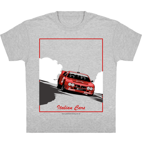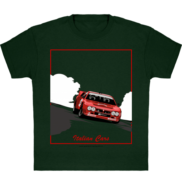 T-shirt enfant personnalisé avec un dessin de Lancia 037 en impression.
